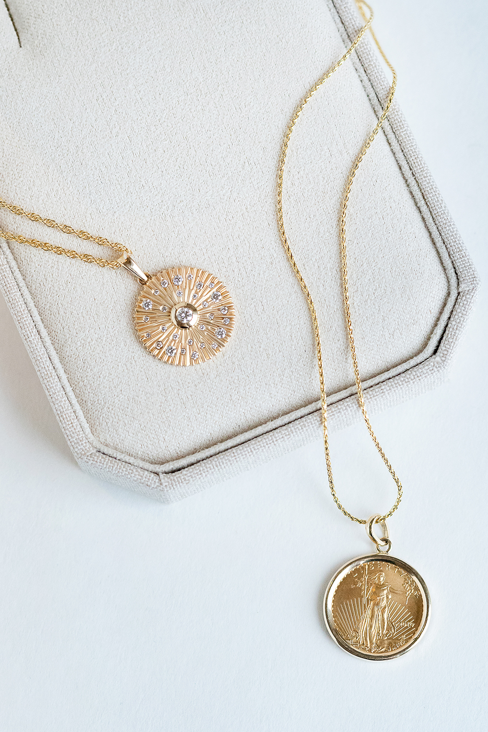 These tiny lakes, an addition to the Original Lake Pendant Collection, have been a labor of love. Made here in our store, each small lake is crafted in your choice of 14k white, yellow or rose gold. They can be worn a number of ways, and look great paired with a bezel-set diamond or birthstone.